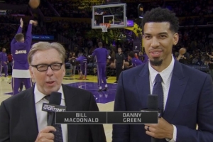 體育資訊10月13日訊 今日前NBA球員、現(xiàn)湖人電臺(tái)Spectrum SportsNet解說員丹尼-格林現(xiàn)場(chǎng)解說湖人VS勇士的季前賽。