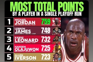 10、喬丹 1998年季后賽共得680分 場(chǎng)均32.4分(21場(chǎng))