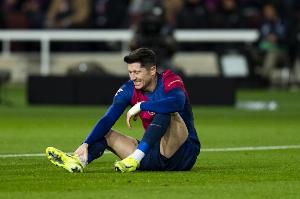 萊萬在波蘭國家隊(duì)受傷,巴薩官方確認(rèn)球員左大腿股二頭肌肌肉撕裂。Javi Miguel進(jìn)一步透露,萊萬至少因傷缺席4周。