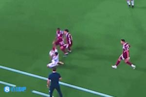 比賽上半場階段,卡塔爾球員在邊線附近解圍,皮球擊中封堵的阿聯(lián)酋球員后發(fā)生變向,重重砸在場邊的卡塔爾主帥洛佩特吉臉上,洛佩特吉隨即痛苦倒地。