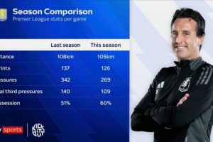 體育資訊9月28日訊 本賽季英超,維拉0勝3平2負(fù)積3分,位居聯(lián)賽第18位。日前,《天空體育》統(tǒng)計了維拉本賽季與上賽季的聯(lián)賽場均數(shù)據(jù)。