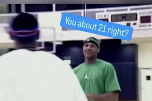 其中有一段畫(huà)面為詹姆斯和好友安東尼在訓(xùn)練館內(nèi)練球,談笑間安東尼質(zhì)疑起詹姆斯的年齡:“你其實(shí)有21歲吧?”