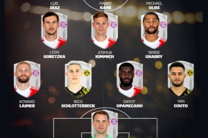 體育資訊10月18日訊 本輪德甲將上演焦點(diǎn)對決拜仁對陣多特,德甲官方也通過球迷票選評選出雙方最佳11人陣容,其中凱恩領(lǐng)銜拜仁9人在列,具體如下: