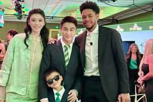 體育資訊10月19日訊 凱爾特人小老板何猷君今日曬出一家人與安芬尼-西蒙斯的合影: