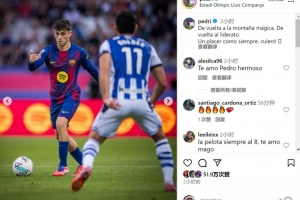 佩德里當選本場比賽最佳球員,賽后他在社交媒體上曬出比賽照片,配文:“重回蒙特惠奇球場,重返西甲榜首。一如既往的快樂,巴薩球迷們?!?/p>