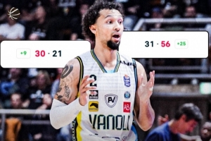比賽中,克雷莫納打出一波史詩級別的進攻高潮,第二節(jié)還剩7分05秒時,他們21-30落后博洛尼亞9分,在隨后的10分半鐘,他們打出一波35-1的進攻高潮。而在這次進攻高潮中,博洛尼亞這一分也是直到第三節(jié)7分35秒才拿到。
