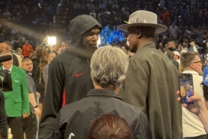 球隊(duì)名宿伊巴卡也來到現(xiàn)場見證這一時刻,賽前他和前隊(duì)友杜蘭特寒暄。