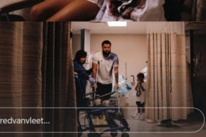 今天,范弗里特在INS曬出了自己在病房的照片,有孩子作陪,并且已經(jīng)拄拐下地行走。