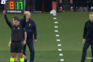 西甲第7輪巴薩2-1擊敗皇家社會,在傷停補時的最后1分鐘,佩德里被換下。