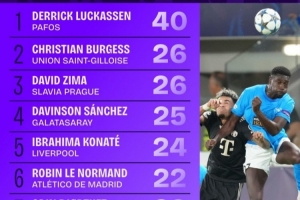 體育資訊10月23日訊 本賽季歐冠聯(lián)賽階段已戰(zhàn)罷3輪,Squawka統(tǒng)計(jì)了到目前為止的解圍榜單。帕福斯后衛(wèi)盧卡森40次解圍斷崖式領(lǐng)先,圣吉羅斯后衛(wèi)布爾格斯和布拉格斯拉維亞后衛(wèi)齊瑪26次分列二三位。