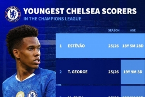 體育資訊10月23日訊 德國轉(zhuǎn)會(huì)市場列出了切爾西隊(duì)史歐冠最年輕進(jìn)球者排名,埃斯特旺居首。