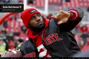 體育資訊10月27日訊 球鞋媒體Soleretriever報道,詹姆斯和Nike為家鄉(xiāng)俄亥俄州立大學(xué)橄欖球隊(duì)制作了橄欖球版本的特殊鞋款。