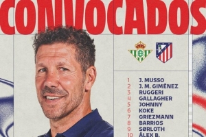 體育資訊10月27日訊 北京時(shí)間明天凌晨4點(diǎn),馬競(jìng)將在西甲第10輪比賽中客場(chǎng)對(duì)陣貝蒂斯,馬競(jìng)公布了此役的球員名單,卡爾多索回歸。