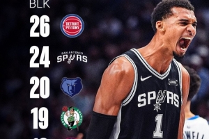 體育資訊10月28日訊 歐媒BasketNews報道,賽季至今文班出場三場比賽,共計送出18次封蓋,場均可以貢獻(xiàn)6次封蓋。