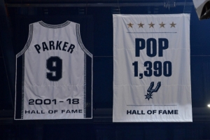 這面旗幟的每一處細(xì)節(jié),都是對傳奇的精準(zhǔn)注解。白色底紋上,五顆金色星星對應(yīng)著2003至2014年間的五座總冠軍獎(jiǎng)杯,底部“HALL OF FAME(名人堂)”標(biāo)識(shí)銘記著他2023年的榮耀加冕,而核心的“1390”字樣,則是波波維奇執(zhí)教的豐碑。數(shù)據(jù)不會(huì)說謊:2214場執(zhí)教、1390場勝利、62.8%勝率、22個(gè)賽季帶隊(duì)闖進(jìn)季后賽,季后賽總勝場達(dá)到170場,5次總冠軍,3次獲得年度最佳教練。但比起數(shù)字,更動(dòng)人的是致敬方式——沒有盛大儀式,恰如波波維奇本人,永遠(yuǎn)將聚光燈讓給團(tuán)隊(duì)。