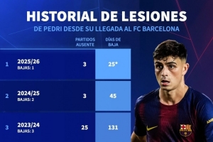 佩德里近5個(gè)賽季傷病情況: