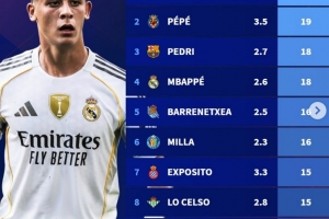 體育資訊9月30日訊 德轉(zhuǎn)盤點(diǎn)了本賽季西甲創(chuàng)造機(jī)會(huì)榜單,其中居勒爾共計(jì)21次創(chuàng)造機(jī)會(huì)居首,具體如下(場均數(shù)據(jù)+總數(shù)據(jù)):