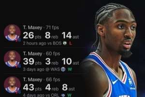 在賽前的前五場(chǎng)比賽中,馬克西場(chǎng)均能得到35.2分,上一個(gè)賽季前五戰(zhàn)場(chǎng)均得分高于他的還是2019年的哈登(場(chǎng)均36.6分)。