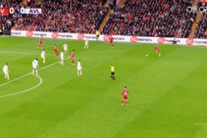 體育資訊11月02日訊 英超第10輪利物浦vs維拉第42分鐘,?;倏祟^球破門(mén),VAR裁定越位明顯,進(jìn)球無(wú)效