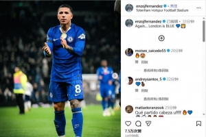 體育資訊11月2日訊 2025-26賽季英超第10輪焦點戰(zhàn),切爾西1-0擊敗熱刺。賽后,藍軍中場恩佐在社交媒體曬圖,慶祝球隊獲勝。