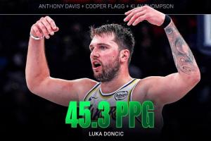歐洲媒體BasketNews:(本賽季)東契奇目前場(chǎng)均得分(45.3分)比濃眉+弗拉格+克萊的總和(43.3分)還要高。