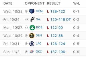體育資訊11月3日訊 鵜鶘客場(chǎng)106-137慘敗雷霆,遭遇開(kāi)季6連敗。