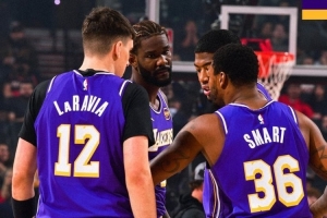 賽后,湖人官方曬出了贏球海報(bào),海報(bào)人物為杰克-拉拉維亞、德安德烈-艾頓、八村塁和馬庫(kù)斯-斯瑪特。湖人官方配文道:“背靠背的比賽,背靠背的勝利!”