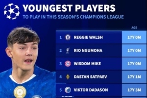 體育資訊11月5日訊 本賽季,歐冠賽場(chǎng)上一批年輕球員有望嶄露頭角,德國轉(zhuǎn)會(huì)市場(chǎng)盤點(diǎn)了各隊(duì)在歐冠中最年輕球員排行。