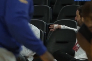 有人拍到庫(kù)明加的經(jīng)紀(jì)人與勇士總經(jīng)理鄧?yán)S在場(chǎng)邊聊天,而庫(kù)明加在鏡頭近景訓(xùn)練。