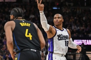 這是威少第十七個(gè)賽季打出三雙。入行以來,除了2012——他在總決賽單場43分那年——他每個(gè)賽季都有三雙。