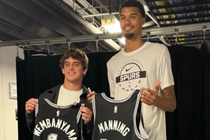 本場比賽,德克薩斯大學橄欖球隊球員阿奇·曼寧等人現(xiàn)場觀看了本場比賽,并受到了文班亞馬及??怂沟慕哟?。星三代阿奇·曼寧還和文班互換了球衣。