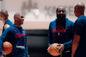 體育資訊10月1日訊 今天,快船官方曬出了球隊訓(xùn)練營首日的照片。其中,哈登和保羅同框亮相。