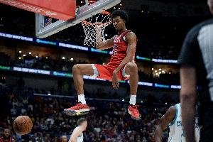 上半場,鵜鶘并不占優(yōu),墨菲個人發(fā)揮上佳,獨自苦撐。他出戰(zhàn)17分鐘,9投6中,三分4中2,罰球2中2,得16分4板1助。