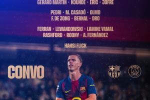 體育資訊10月01日訊 巴薩公布?xì)W冠對陣巴黎的大名單,萊萬、亞馬爾、佩德里領(lǐng)銜,巴爾德復(fù)出,一線隊(duì)門將僅什琴斯尼。