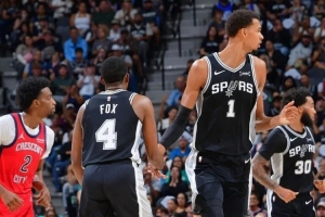 然后是第四節(jié),鵜鶘追近時,馬刺需要有人接管。福克斯一條龍突破,再一個跨步拋射,鎖局。