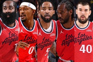 本賽季快船最常用的陣容是哈登、比爾、小瓊斯、萊昂納德和祖巴茨組成的首發(fā)陣容。這陣容在9場(chǎng)比賽中出場(chǎng)63分鐘,進(jìn)攻效率120.9,防守效率為131.8,凈效率為-10.9。