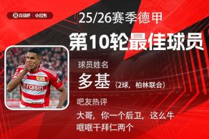 第十輪評選結(jié)果結(jié)出爐,柏林聯(lián)合中衛(wèi)多基梅開二度,幫助球隊2-2戰(zhàn)平拜仁,終結(jié)后者開局16連勝紀錄,當(dāng)選【體育資訊X小紅書德甲第10輪最佳球員】!