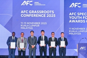 北京時間11月11日,2025年亞足聯(lián)草根足球大會及“2025亞足聯(lián)草根足球特殊貢獻(xiàn)獎”頒獎儀式在馬來西亞吉隆坡隆重召開。由中國足球協(xié)會推薦的譚杰榮獲“2025亞足聯(lián)最佳草根足球領(lǐng)導(dǎo)者獎”,青苗聯(lián)賽摘得“2025亞足聯(lián)草根足球最佳賽事獎”,為中國草根足球贏得國際贊譽。