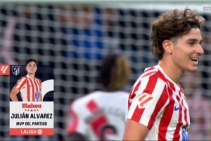 體育資訊9月25日訊 2025-26賽季西甲聯(lián)賽第6輪,馬競(jìng)主場(chǎng)3-2戰(zhàn)勝巴列卡諾。阿爾瓦雷斯首發(fā)出戰(zhàn),上演帽子戲法,賽后當(dāng)選為全場(chǎng)最佳球員。