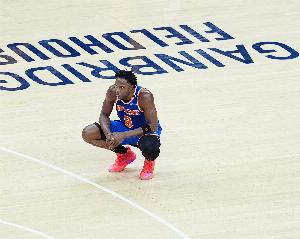 比賽首節(jié),尼克斯球員阿努諾比受傷離場。隨后尼克斯官方宣布,阿努諾比左腿筋拉傷,本場不會回歸。