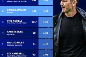 德國轉(zhuǎn)會(huì)市場盤點(diǎn)了英格蘭“黃金一代”球員在教練崗位上的執(zhí)教戰(zhàn)績,杰拉德以場均1.82分居首,蘭帕德以場均1.55分位居次席。