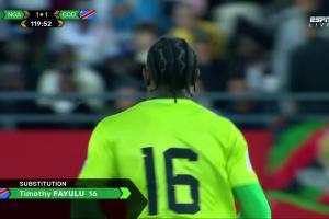 此役兩隊在常規(guī)時間120分鐘內(nèi)打成1-1平,民主剛果專門換門將迎接點(diǎn)球大戰(zhàn),法尤魯替補(bǔ)登場。