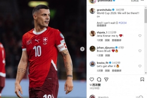 此役扎卡為瑞士首發(fā)出戰(zhàn),賽后他在社交媒體上曬出比賽照片,慶祝球隊出線,配文:“2026年世界杯——我們來了!我已迫不及待?!?/p>