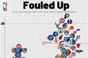 上賽季聯(lián)盟各隊(duì)場(chǎng)均罰球數(shù)為19.1次;本賽季該數(shù)據(jù)為22.4次。(數(shù)據(jù)截至今日賽前)