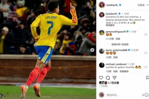 迪亞斯社媒曬出慶祝進(jìn)球的照片,配文:“我們以勝利和美妙的感覺為2025年收官,2026年見,哥倫比亞球迷們!”