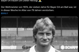 在官方公告中,勒沃庫(kù)森聲明:“俱樂(lè)部對(duì)迪特·赫爾佐格的逝世表示哀悼! ??他曾效力于勒沃庫(kù)森7年,這位1974年世界杯冠軍隊(duì)成員于本周去世,享年79歲?!?/p>