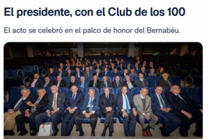 體育資訊11月22日訊 皇馬官網(wǎng)報道,俱樂部主席弗洛倫蒂諾在伯納烏球場榮譽包廂出席傳統(tǒng)“百人俱樂部”午宴,設(shè)宴招待俱樂部最資深的會員們。