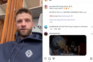 他也在賽后通過社媒紀(jì)念晉級:“難以置信!!!! ????多么瘋狂的一場比賽!!! ??????我們晉級西部決賽了????我??這支球隊!加油, @溫哥華白浪??”