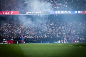 約翰·克魯伊夫那句著名的箴言“盡情享受比賽”仿佛寫(xiě)在球員們臉上,加泰羅尼亞青年合唱團(tuán)演繹那美妙絕倫的巴薩隊(duì)歌更令全場(chǎng)沸騰。令人起雞皮疙瘩的時(shí)刻——或者用這位傳奇荷蘭人常說(shuō)的:激動(dòng)得起雞皮疙瘩。當(dāng)煙花表演與隊(duì)歌完美同步,照亮整個(gè)球場(chǎng)時(shí),這種感覺(jué)愈發(fā)強(qiáng)烈,匯成一片團(tuán)結(jié)的吶喊。
