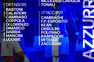 后衛(wèi):巴斯托尼(國際米蘭)、卡拉菲奧里(阿森納)、坎比亞索(尤文圖斯)、 科波拉(布萊頓)、迪洛倫佐(那不勒斯)、迪馬爾科(國際米蘭)、加比亞(米蘭)、曼奇尼(羅馬)、烏多吉(熱刺)